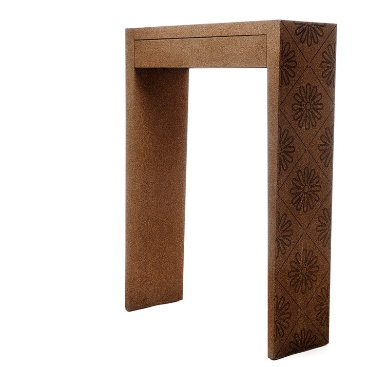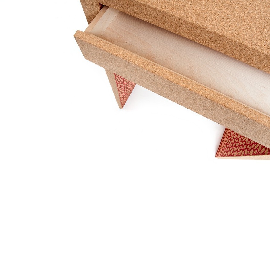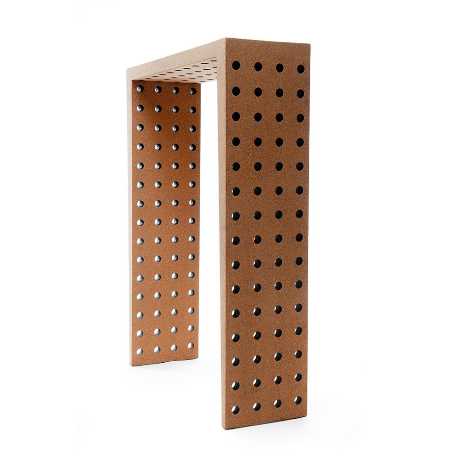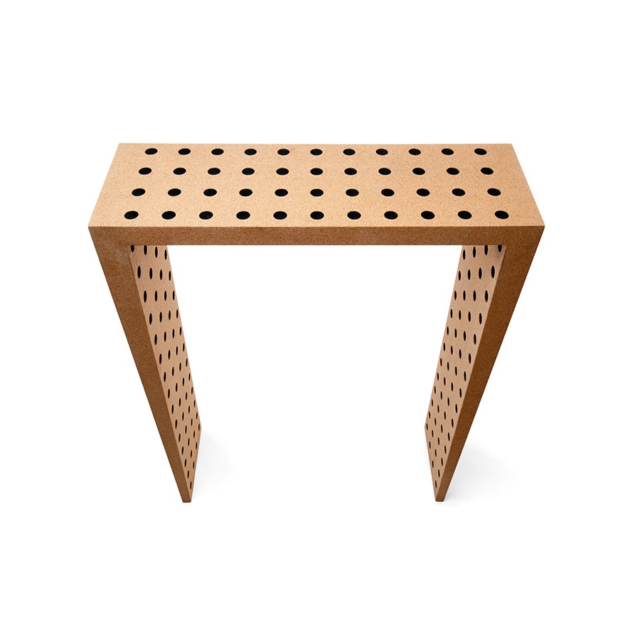 The One Sixty-Four cork sideboard is the name for a piece with 164 perfect holes. The black holes and the larger grain scale of the cork texture surface adds a very original look and feel to the sideboard. One Sixty-Four is made of a natural agglomerate cork and black waterproof MDF sandwich.