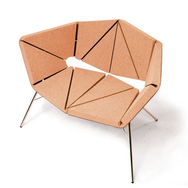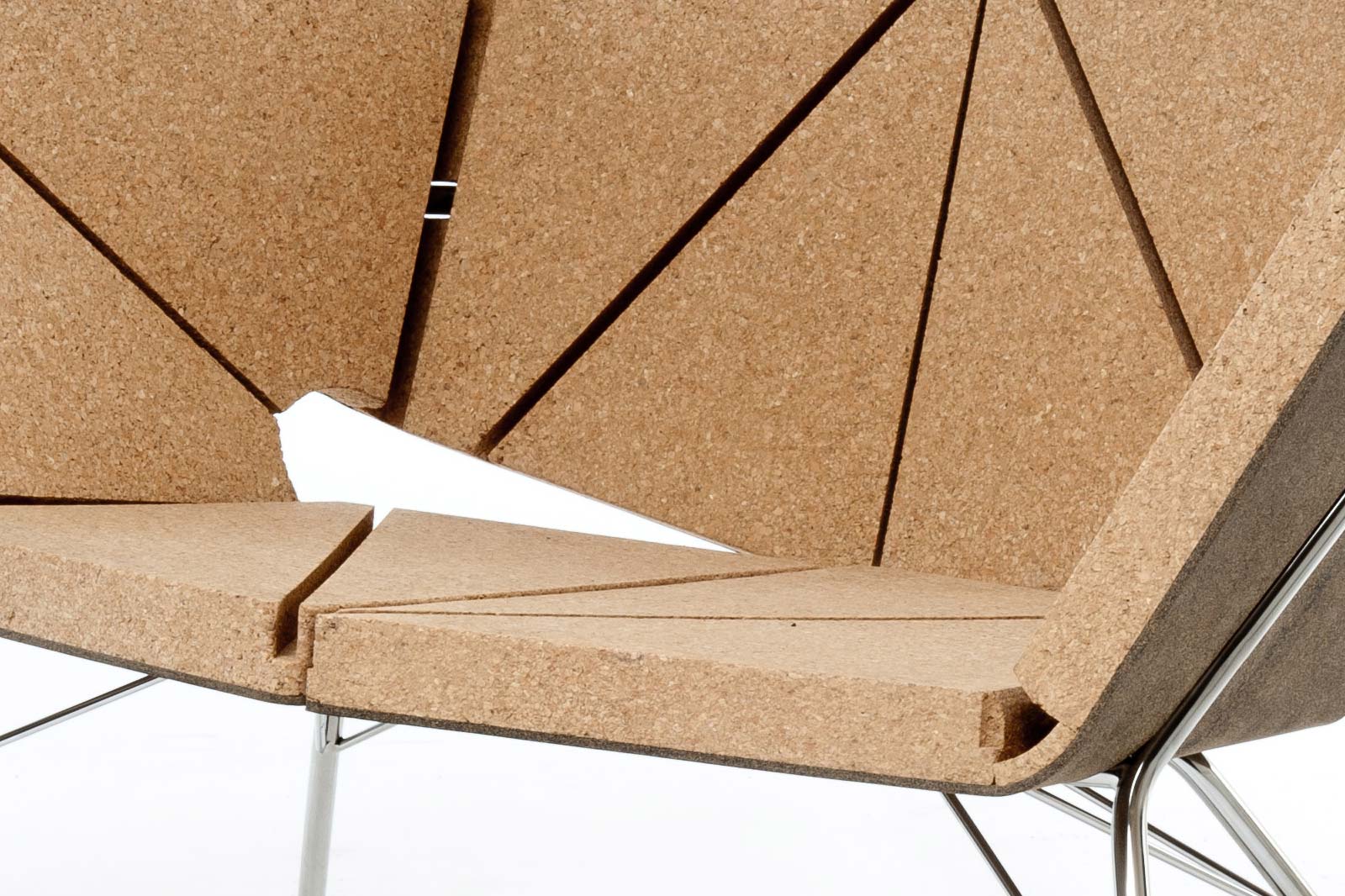 The Vinco chair offers a sophisticated feel with a natural touch, providing a unique sensorial experience with cork. The crevices in the “Vinco” form a volumetric structure out of a flat board, made from a sandwich of natural agglomerate cork and rubber cork. The chair is ready to use just by assembling the board on the polished steel structure, without any glue or screws.